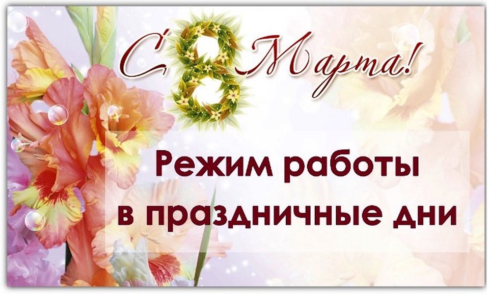 График работы мебельной части ТЦ «КОСМОС» в международный женский день 8 марта